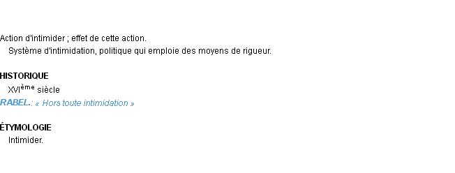 Définition issue du dictionnaire wiktionary pour le mot « intimidation ».