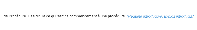 Ancienne signification éditée en 1835 pour le terme « introductif » par l’Académie Française.