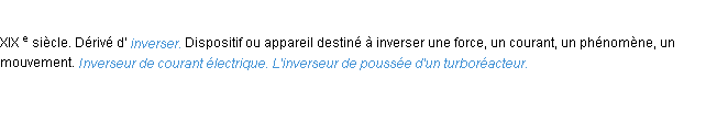 Signification éditée en 2010 par l’équipe de la-definition.fr.Merci à Philippine et Romain pour la numérisation du mot inverseur.