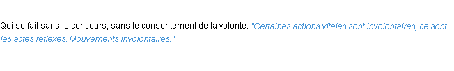 Définition « involontaire » du dictionnaire académique Français, parution de l’année 1986.
