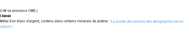 Définition de « iridium » de source académique (Académie Française, parution de 1986).