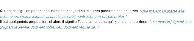 Définition de l’Académie Française (édition de 1932) pour le mot « joignant ».