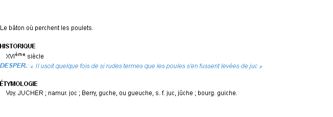 Définition de « juc » issue du Littré (Auteur Emile Littré, édité en 1876).