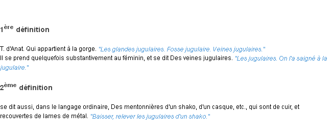 Signification du terme « jugulaire », parution de 1932, dictionnaire académique Français.