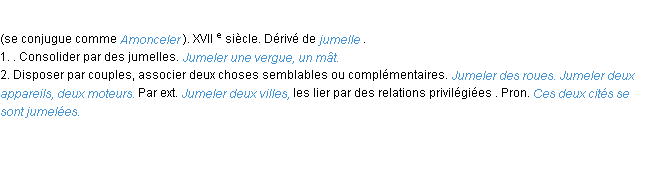 Définition académique pour le terme « jumeler » (parue en 1932).