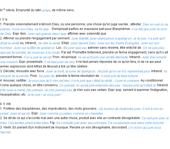 Définition du mot « jurer » par l’Académie Française (édition de 1932).