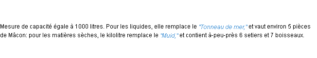 Ancienne définition académique pour le terme « kilolitre » (parue en 1835).