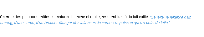 Ancienne signification du terme « laitance ou laite », parution de 1835, dictionnaire académique Français.