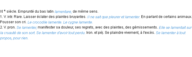 Ancienne définition académique pour le terme « lamenter » (parue en 1835).