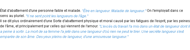 Ancienne signification éditée en 1835 pour le terme « langueur » par l’Académie Française.