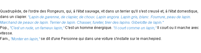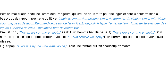 Définition « lapin » du dictionnaire académique Français, parution de l’année 1932.