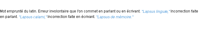 Définition « lapsus » du dictionnaire académique Français, parution de l’année 1986.