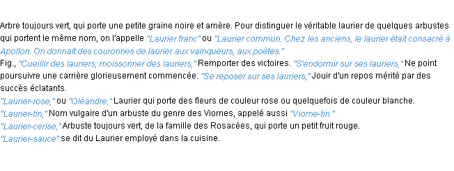 Ancienne définition du mot « laurier » par l’Académie Française (édition de 1835).