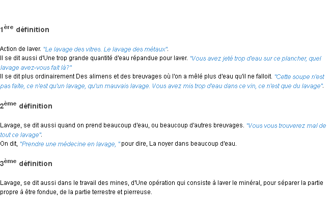 Signification éditée en 1932 pour le terme « lavage » par l’Académie Française.