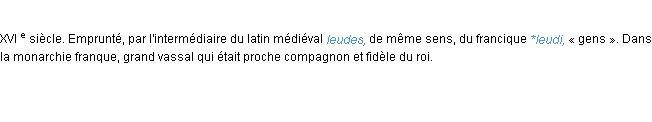 Ancienne signification éditée en 1835 pour le terme « leude » par l’Académie Française.