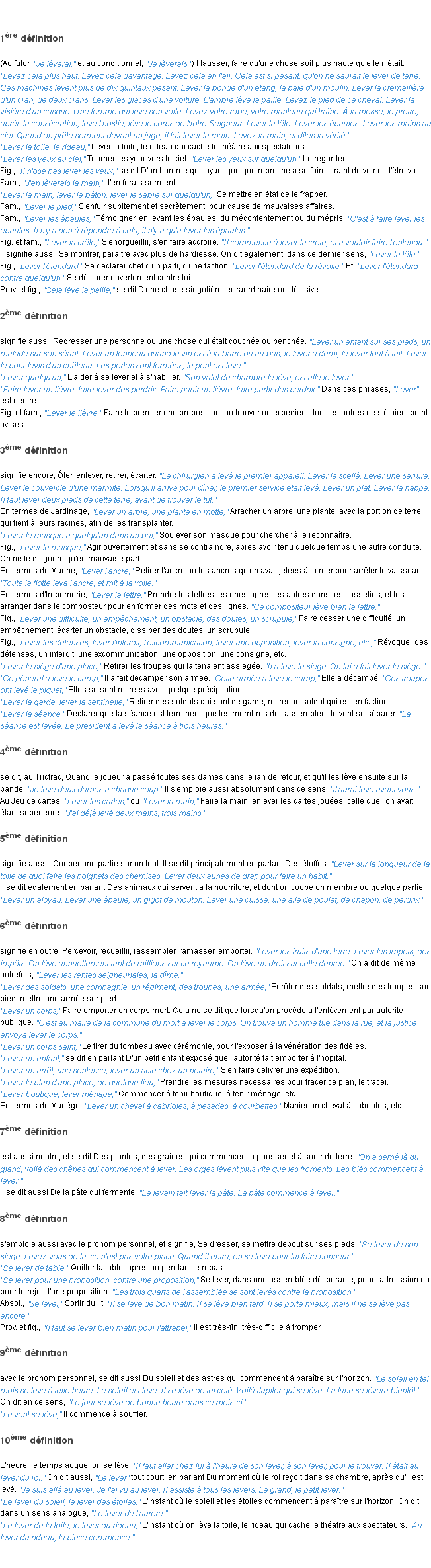 Signification éditée en 1932 pour le terme « lever » par l’Académie Française.