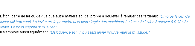 Signification éditée en 1986 pour le terme « levier » par l’Académie Française.