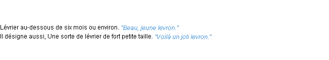 Signification du terme « levron », parution de 1876 (dictionnaire le Littré).