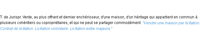 Ancienne signification éditée en 1835 pour le terme « licitation » par l’Académie Française.