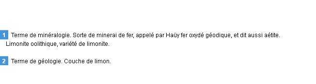 Définition d’Emile Littré (édition de 1876) pour le mot « limonite ».