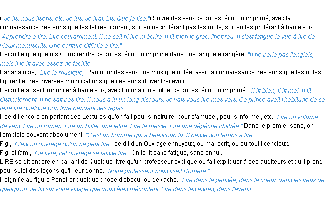 Signification éditée en 1986 pour le terme « lire » par l’Académie Française.