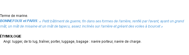 Signification éditée en 1876 pour le terme « lougre » par Emile Littré.