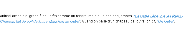 Ancienne définition « loutre » du dictionnaire académique Français, parution de l’année 1798.Merci à Ignace et Armand pour la numérisation du mot loutre.