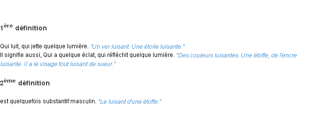 Ancienne signification parue en 1798 dans dictionnaire de l’Académie Française.Merci à Baptiste et Corin pour la numérisation du mot luisant.