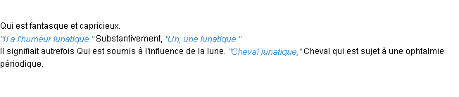 Définition de l’Académie Française (édition de 1986) pour le mot « lunatique ».