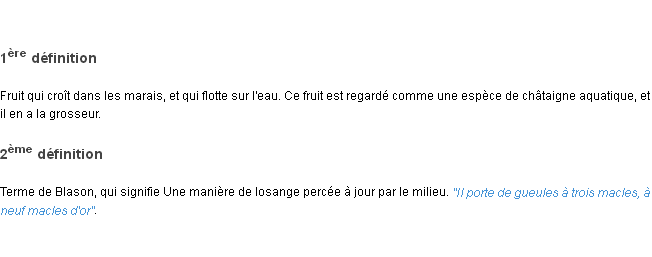 Signification du terme « macle », parution de 1932, dictionnaire académique Français.