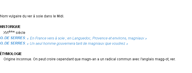 Signification du terme « magnan », parution de 1986, dictionnaire académique Français.