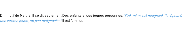 Définition de l’Académie Française (édition de 1986) pour le mot « maigrelet ».