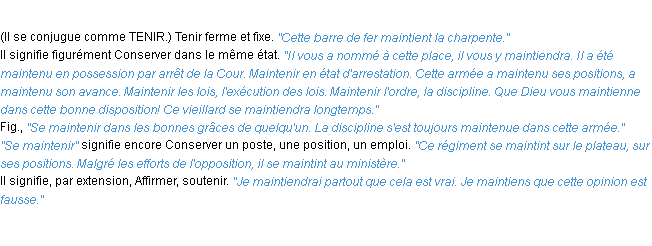 Signification éditée en 1932 pour le terme « maintenir » par l’Académie Française.