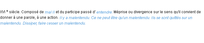 Ancienne signification éditée par l’Académie Française, année 1798.Merci à Océane et Axelle pour la numérisation du mot malentendu.