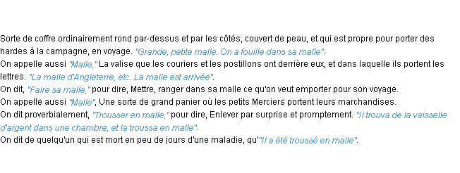 Ancienne définition de l’Académie Française (édition de 1798) pour le mot « malle ».