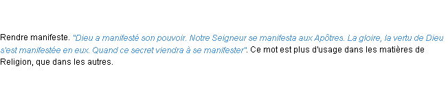 Ancienne définition académique pour le terme « manifester » (parue en 1835).