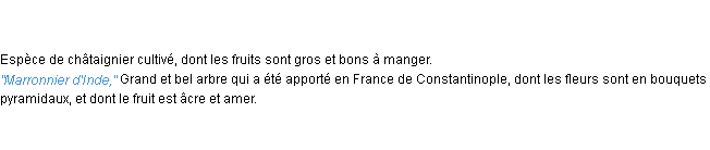 Définition de l’équipe de la-definition.fr (édition de 2009) pour le mot « marronnier ».Merci à Nadine et Virginie pour la numérisation du mot marronnier.