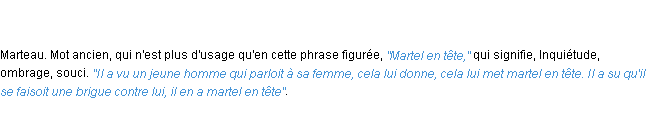 Signification éditée en 1986 pour le terme « martel » par l’Académie Française.