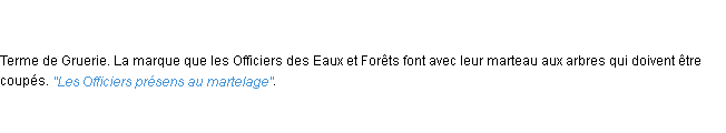 Ancienne définition de « martelage » de source académique (Académie Française, parution de 1798).