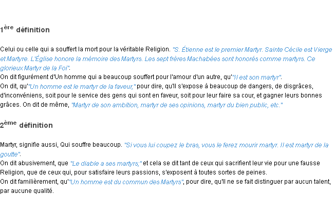 Définition de « martyr » de source académique (Académie Française, parution de 1932).