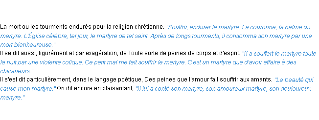 Signification parue en 2009 (source la-definition.fr).Merci à éliane et Bernadette pour la numérisation du mot martyre.