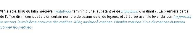 Définition du mot « matines » par l’Académie Française (édition de 1986).