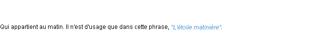 Définition « matinier » du dictionnaire académique Français, parution de l’année 1986.