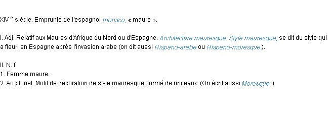 Signification éditée en 1932 pour le terme « mauresque » par l’Académie Française.