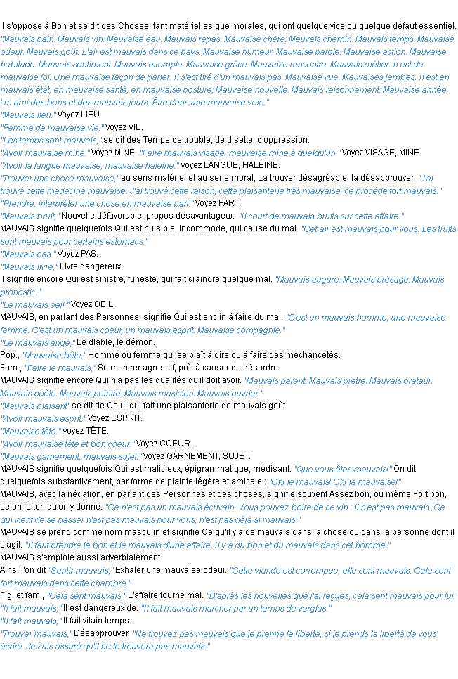 Ancienne définition du mot « mauvais » par l’Académie Française (édition de 1835).