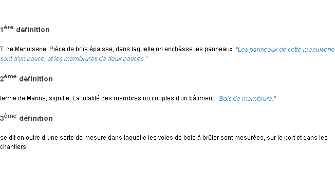 Ancienne signification du terme « membrure », parution de 1835, dictionnaire académique Français.