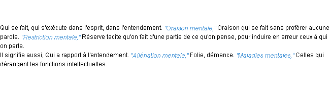 Ancienne signification issue du dico de l’Académie Française, parue en 1798.Merci à Fabrice et Serge pour la numérisation du mot mental.