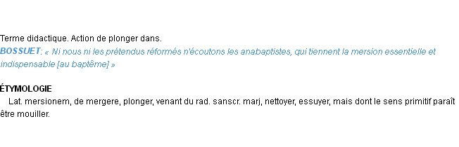 Définition de « mersion » issue du Littré (Auteur Emile Littré, édité en 1876).
