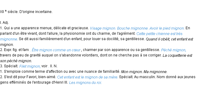 Définition du mot « mignon » par l’Académie Française (édition de 1932).