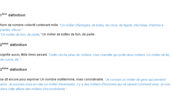Définition « millier » du dictionnaire académique Français, parution de l’année 1932.